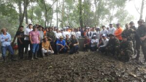 El Dr. Arrocha, junto al H.R. Cesar Pimentel, Representante del Corregimiento de Cucunatí, estudiantes de ISAE Universidad y el Centro Regional de Universidad Nacional en Darién, develaron una placa en reconocimiento a los esfuerzos conjuntos por la conservación y educación ambiental en el Cerro Pechito Parado.